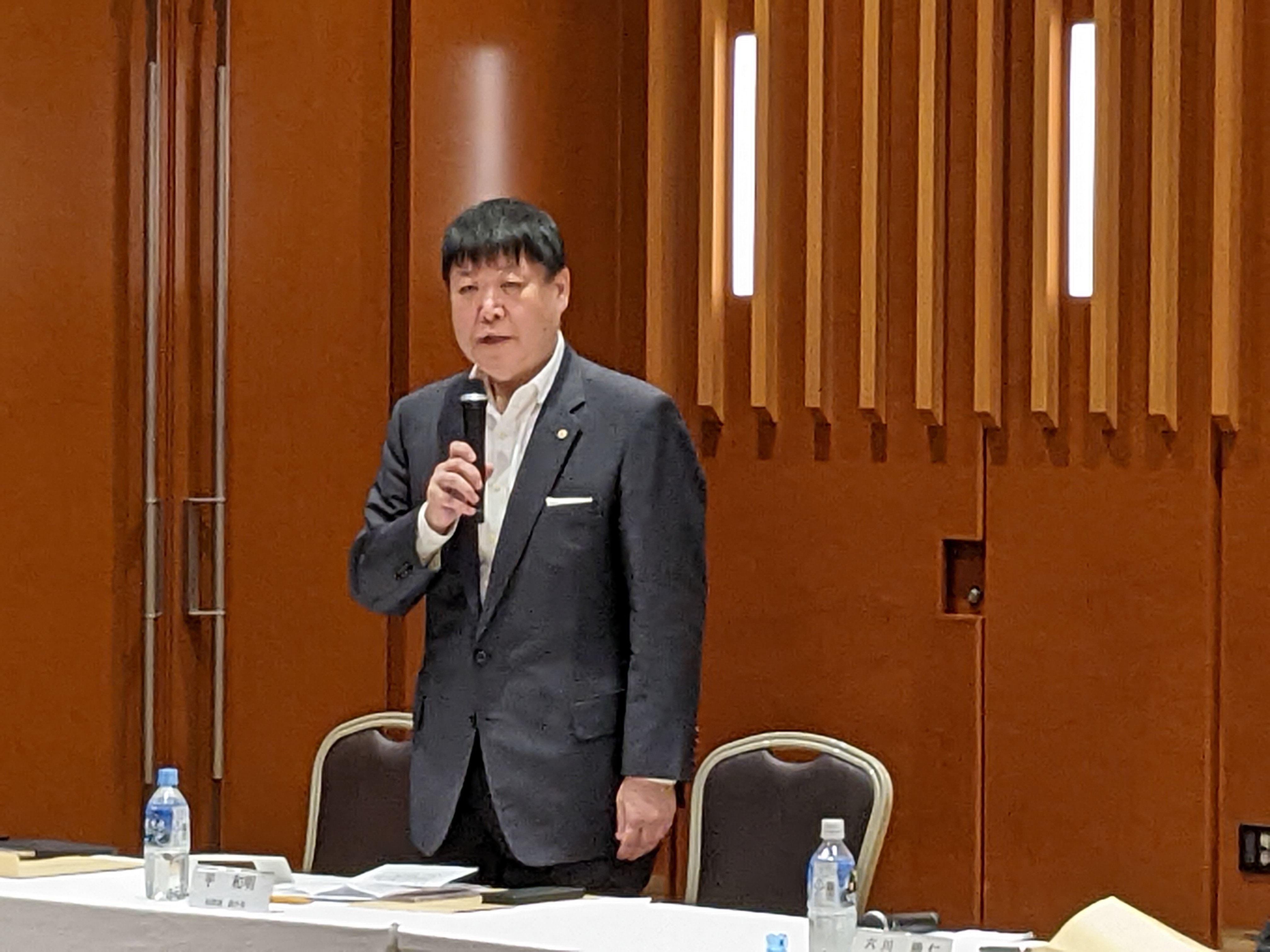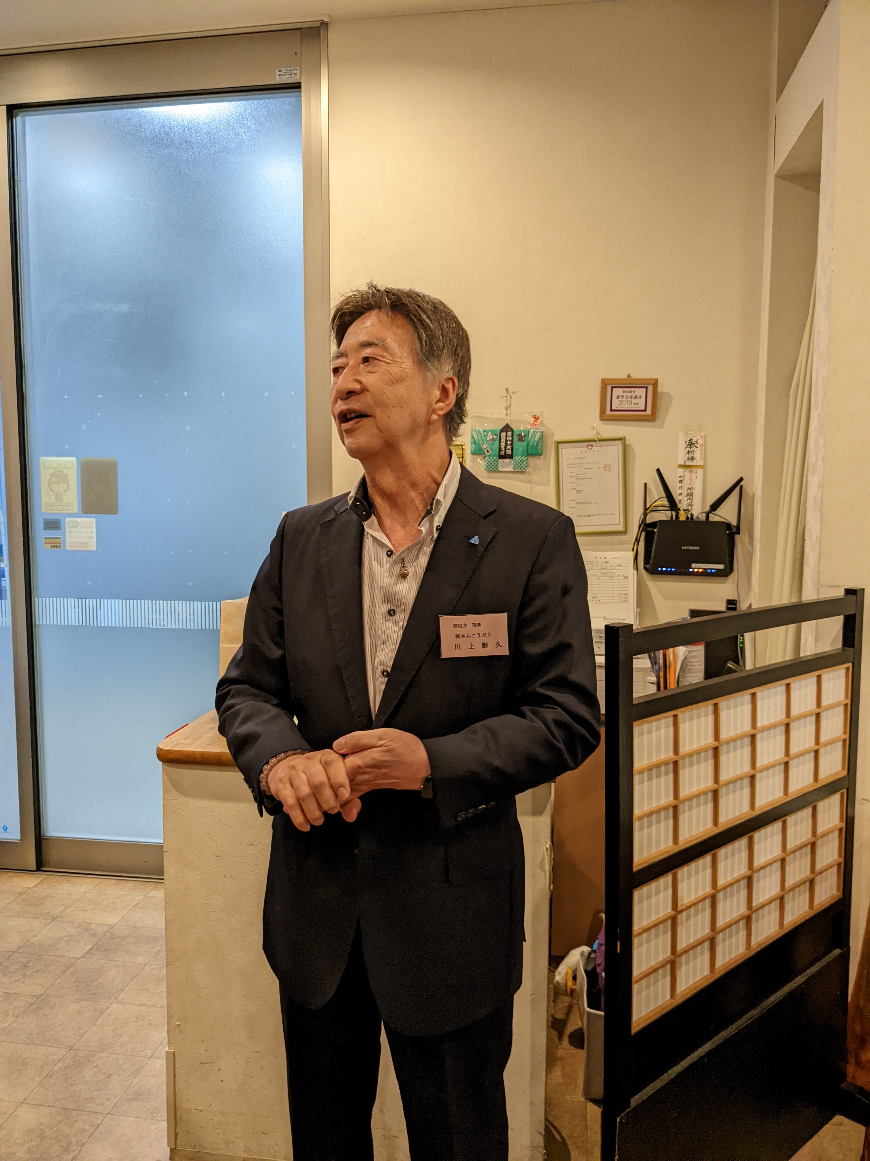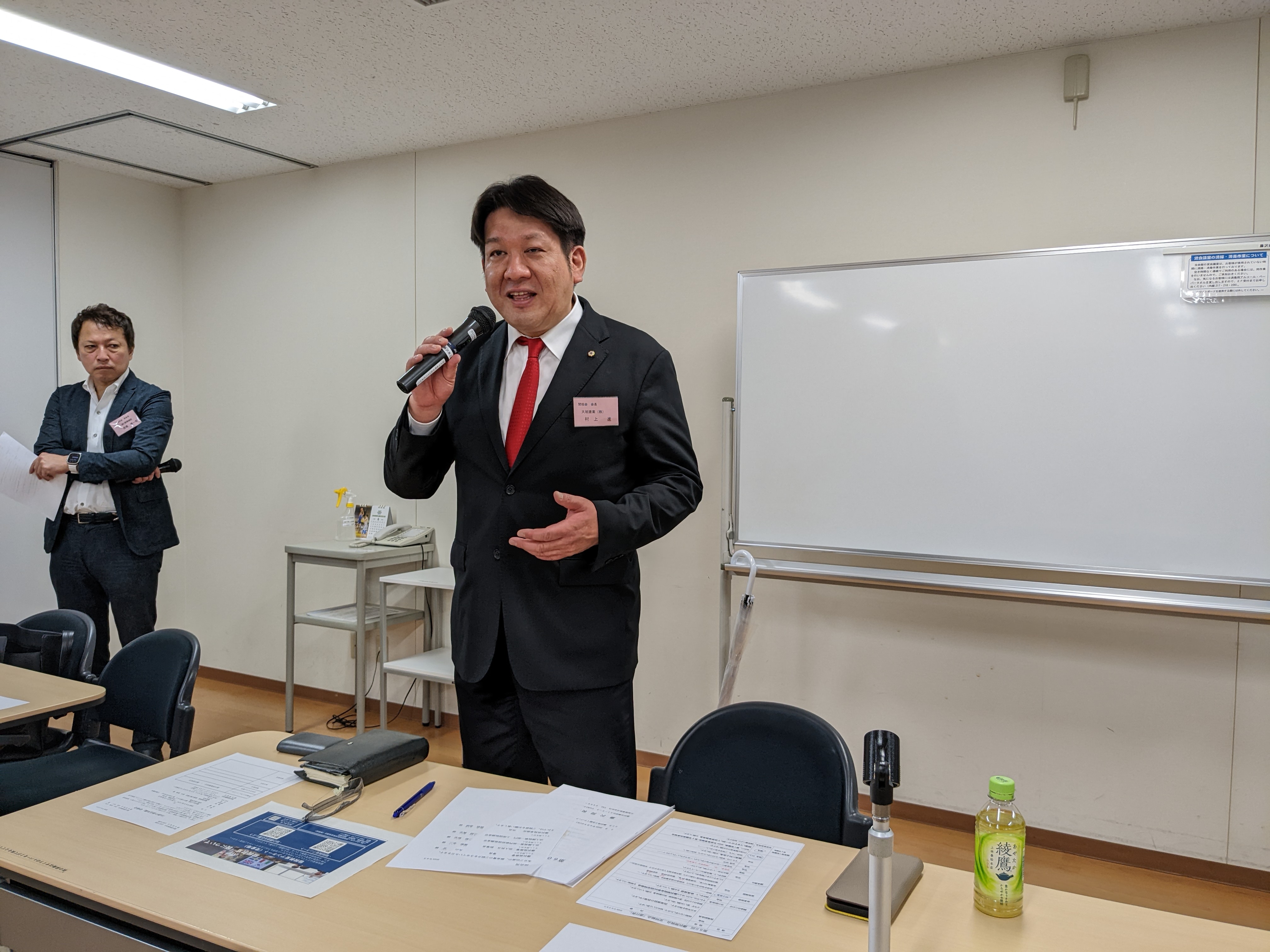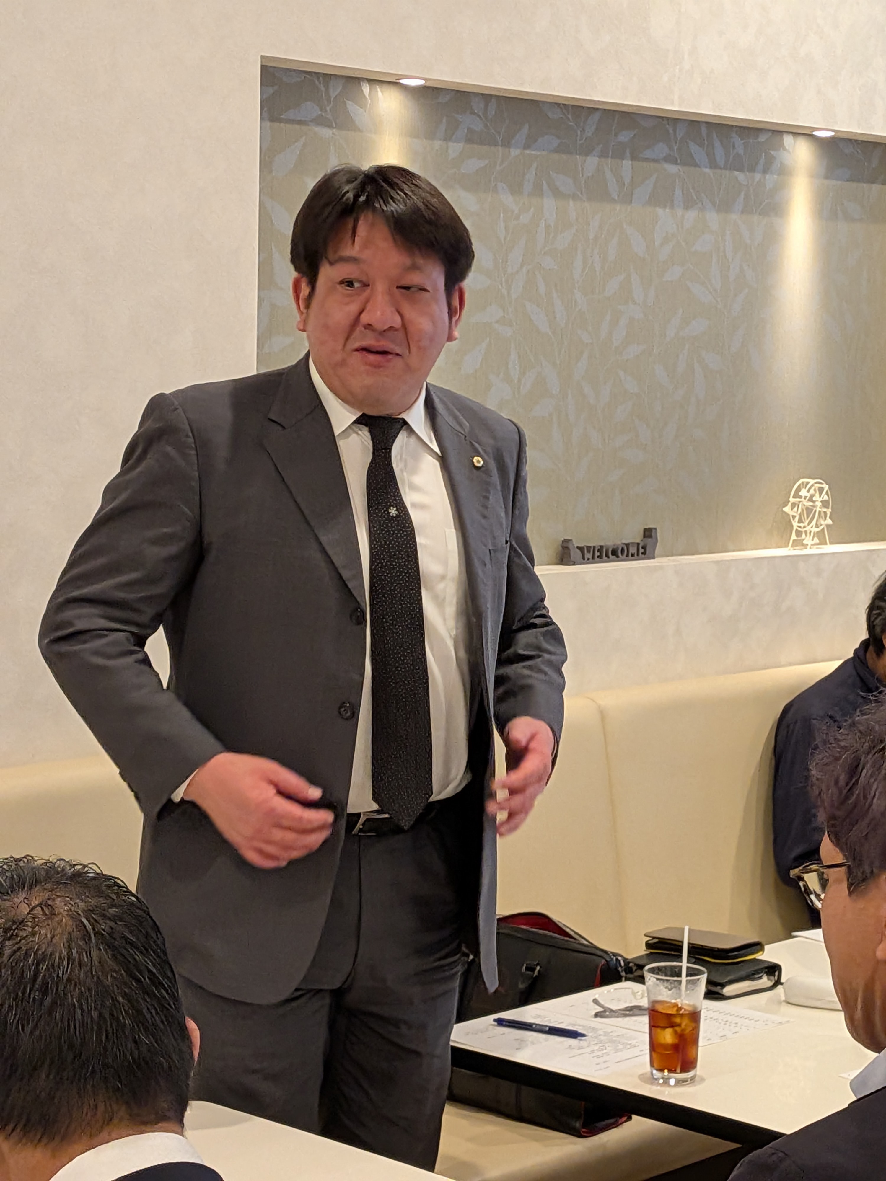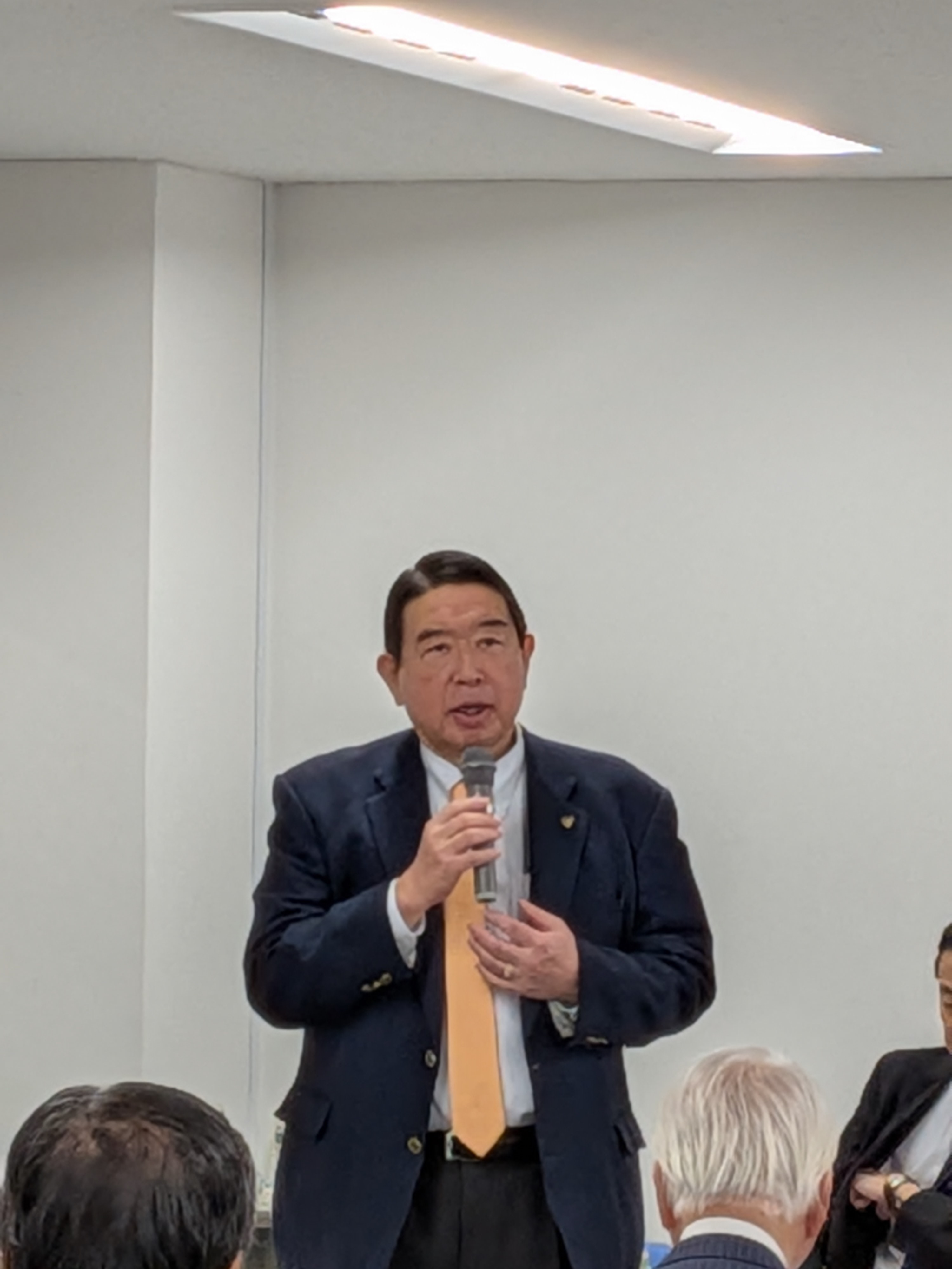意見交換会中締め 絶妙な挨拶をする川上理事