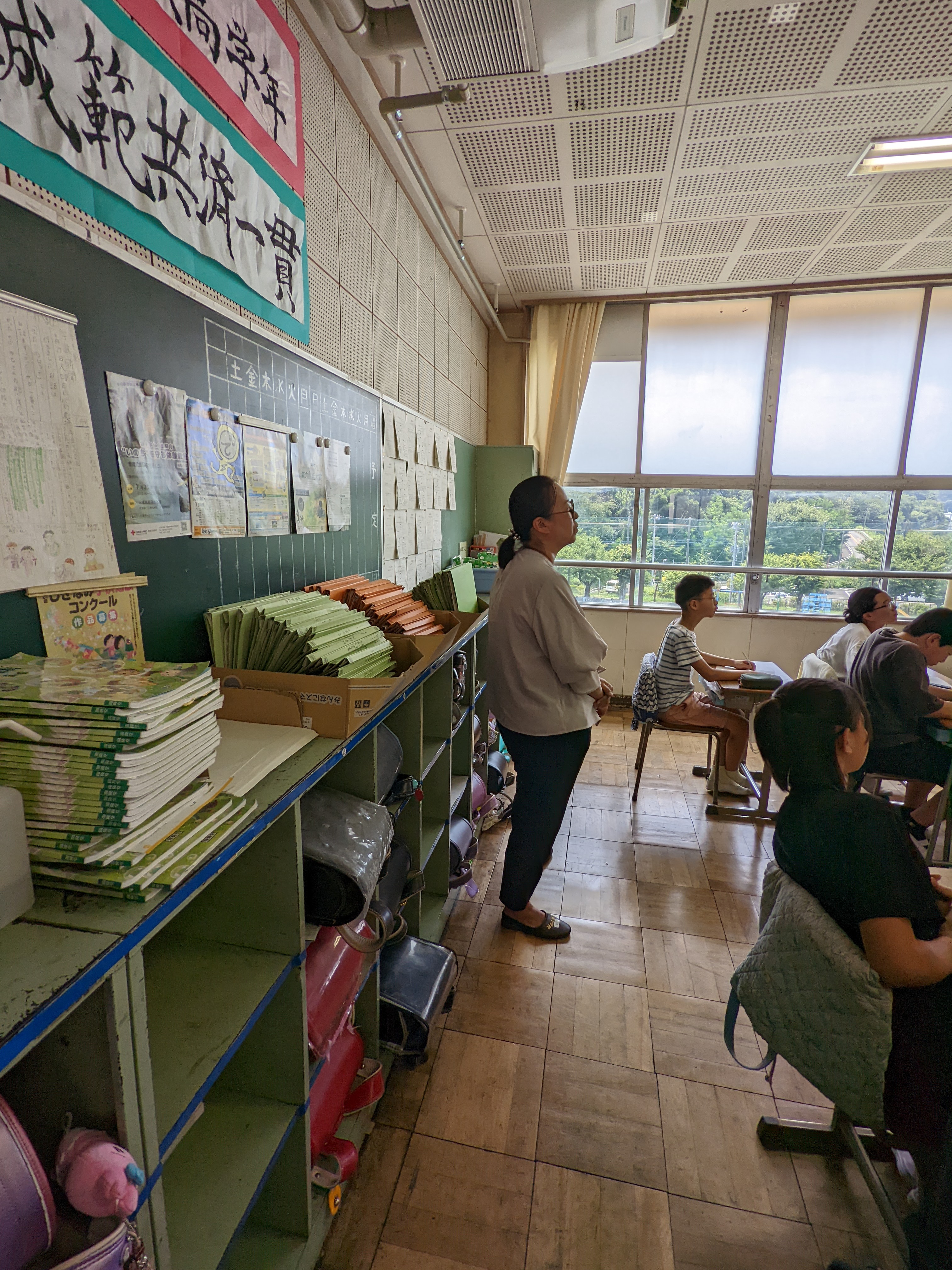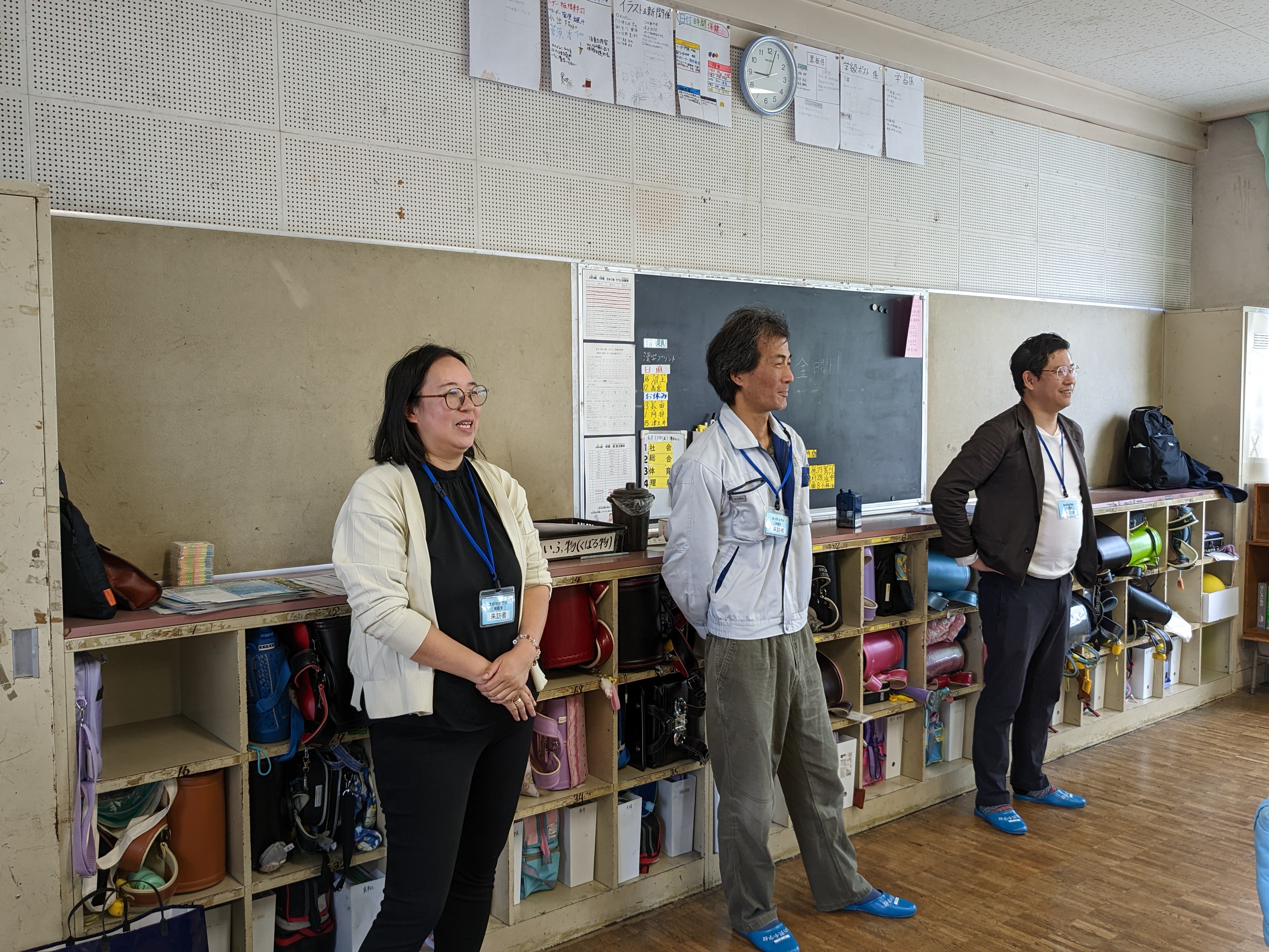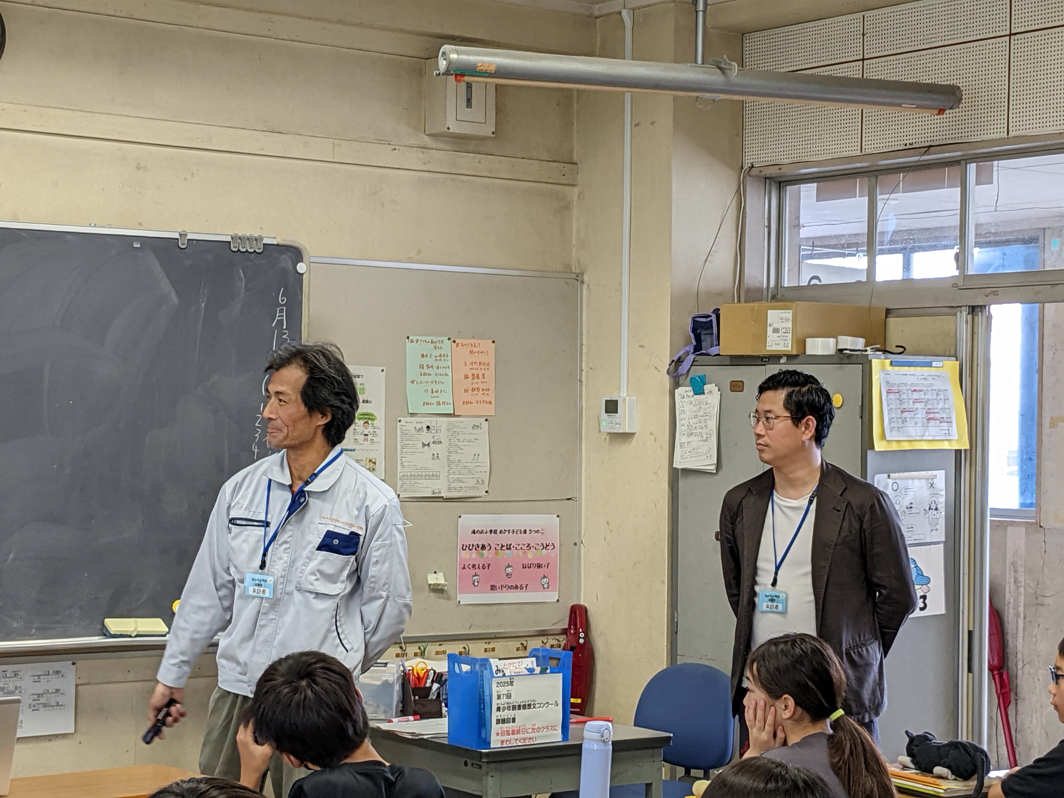 6年1組は、砂川常任6年2組は、坪根さんが説明